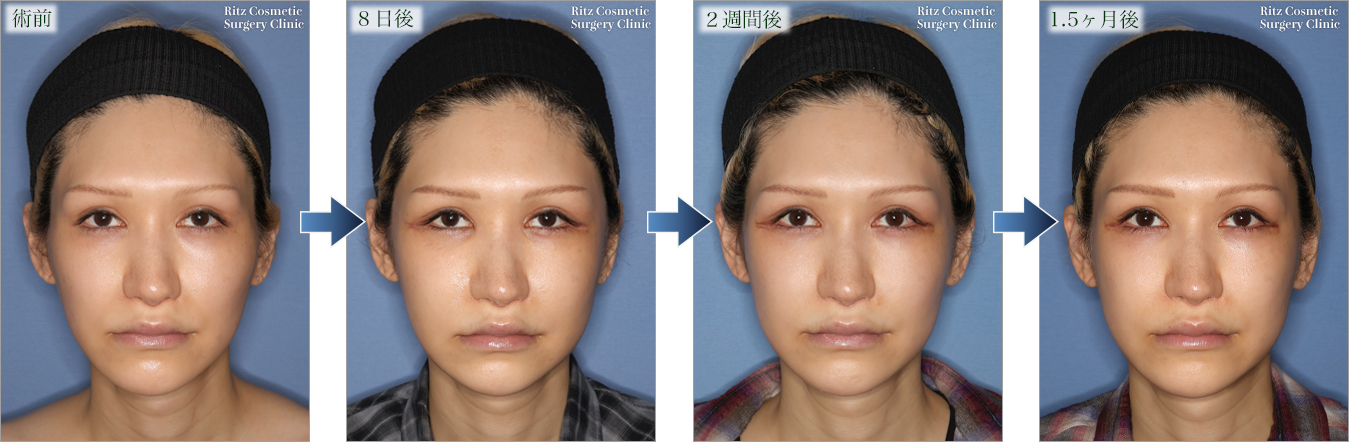 - 頬骨縮小術(+前頭洞骨切り+上眼瞼リフト+鼻シリコンプロテーゼ) 腫れの経過
