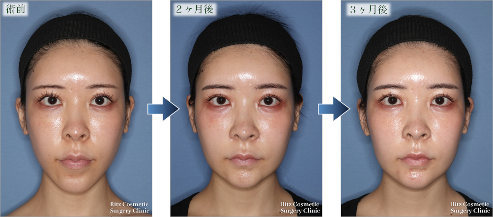 - オトガイ水平骨切り術(5㎜短縮) +(+エラ縮小術+頬骨縮小術)