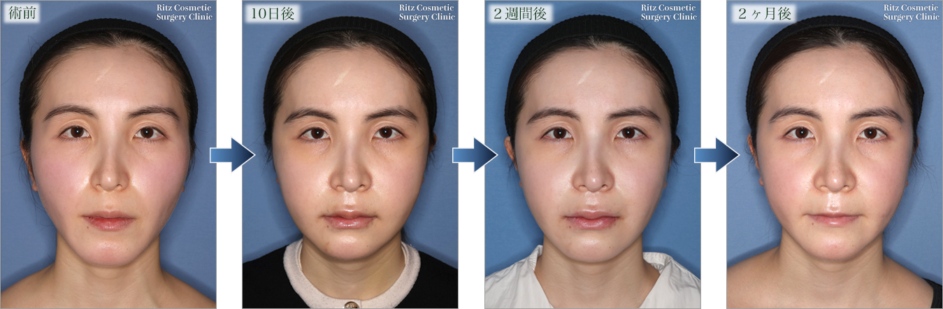 - Lefort-1 + 下顎枝垂直骨切り術(IVRO) 腫れの経過